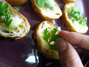 香菜とゴルゴンゾーラのクロスティーニ